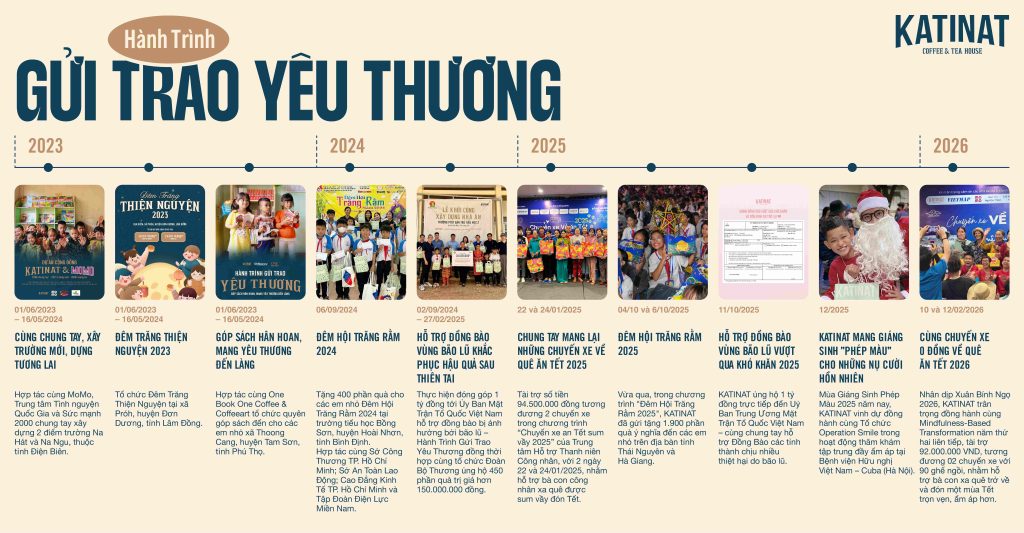 “Hành Trình Gửi Trao Yêu Thương” – chuỗi hoạt động thiện nguyện của KATINAT Coffee & Tea House với thông điệp “nhiều hành động nhỏ, góp thành ý nghĩa to, ai cũng có thể chung tay làm việc tốt”.