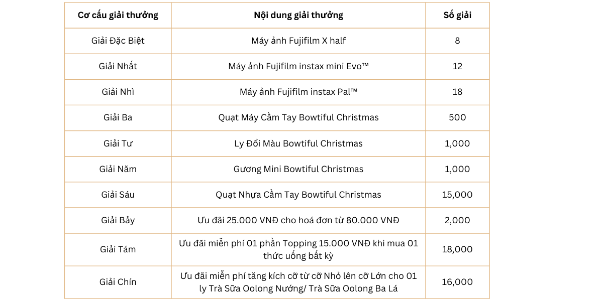 – Giải thưởng không có giá trị quy đổi thành tiền mặt.